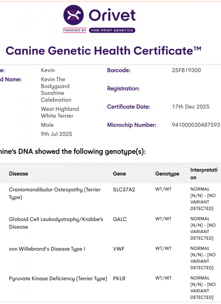 WESTIE BOYS We would love to introduce our new boy from Sunshine Celebration in Slovakia. Call Name is KEVIN “Kevin the Bodyguard Sunshine Celebration – DOB is July 9, 2025 PEDIGREE – click on link